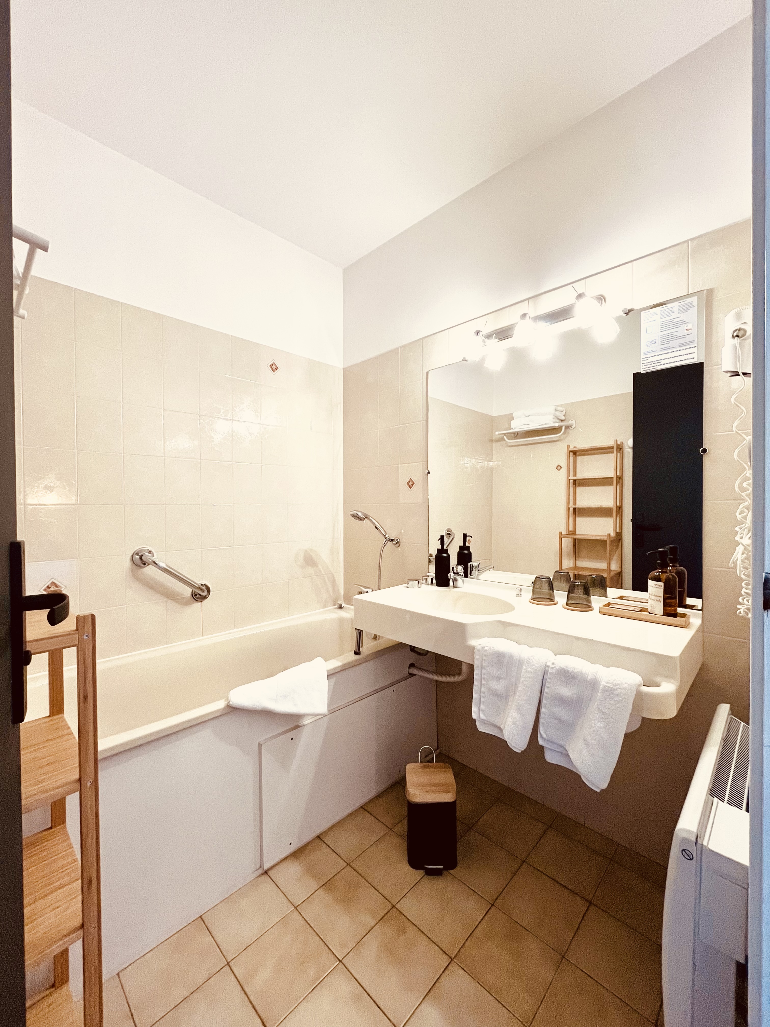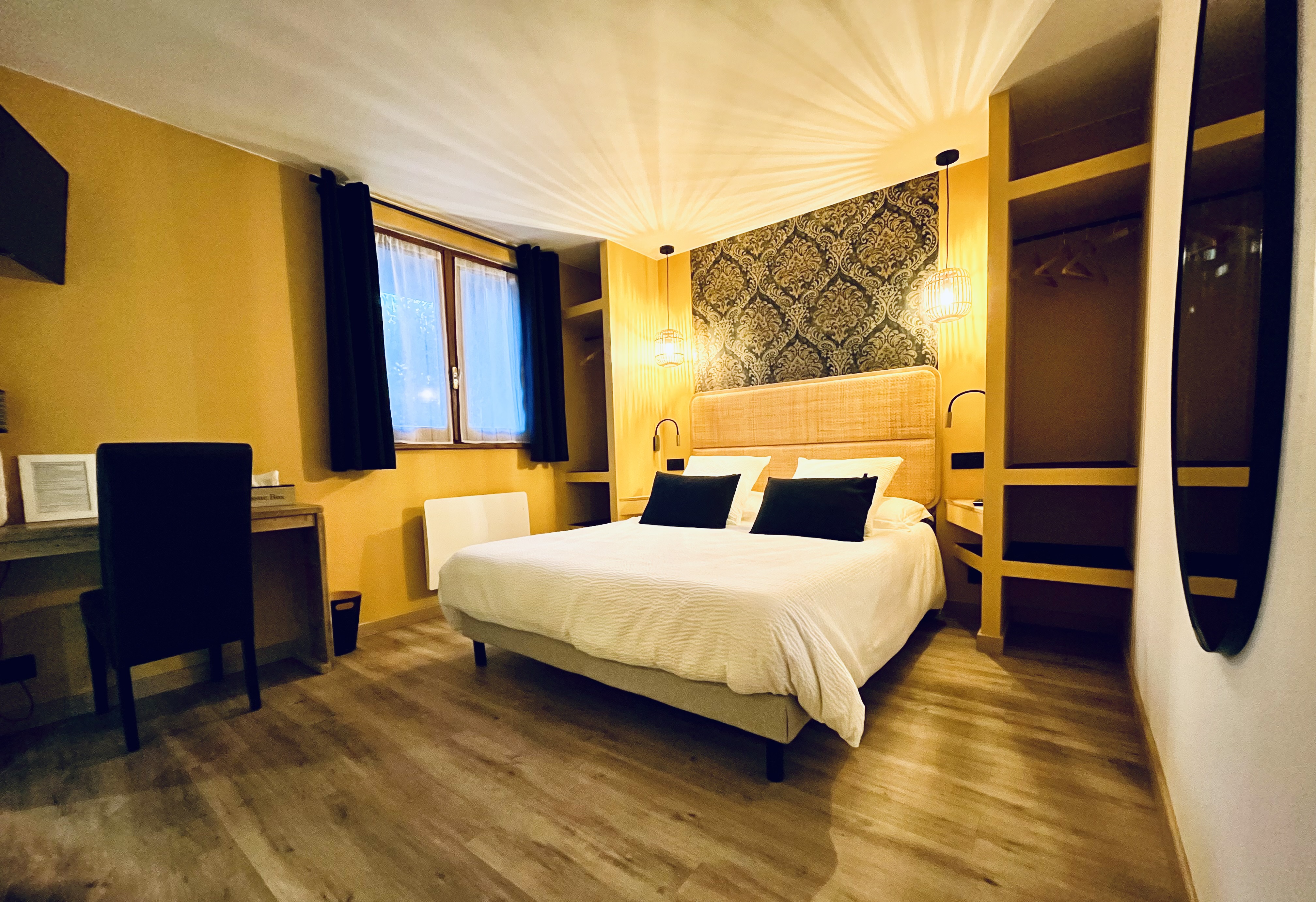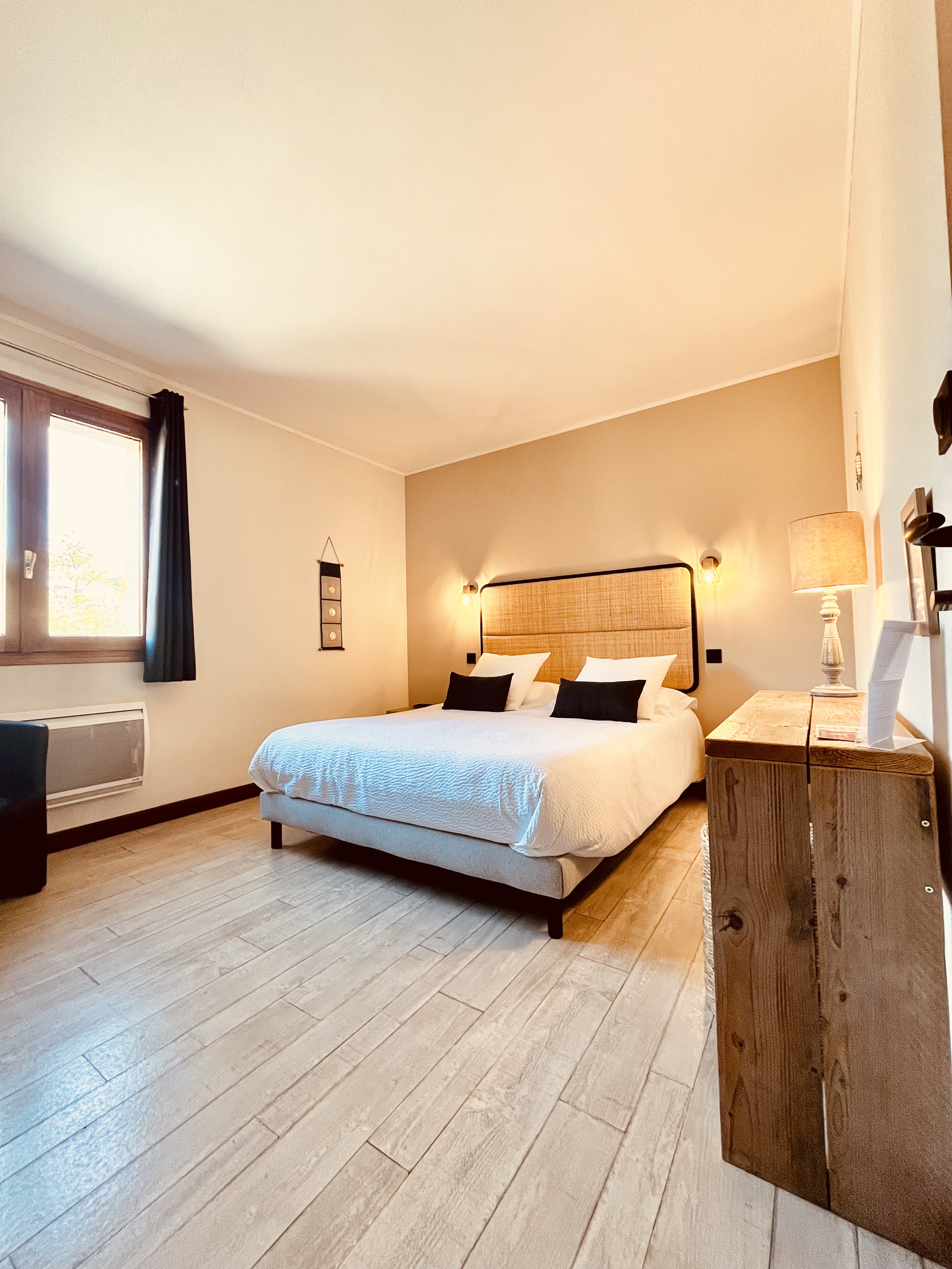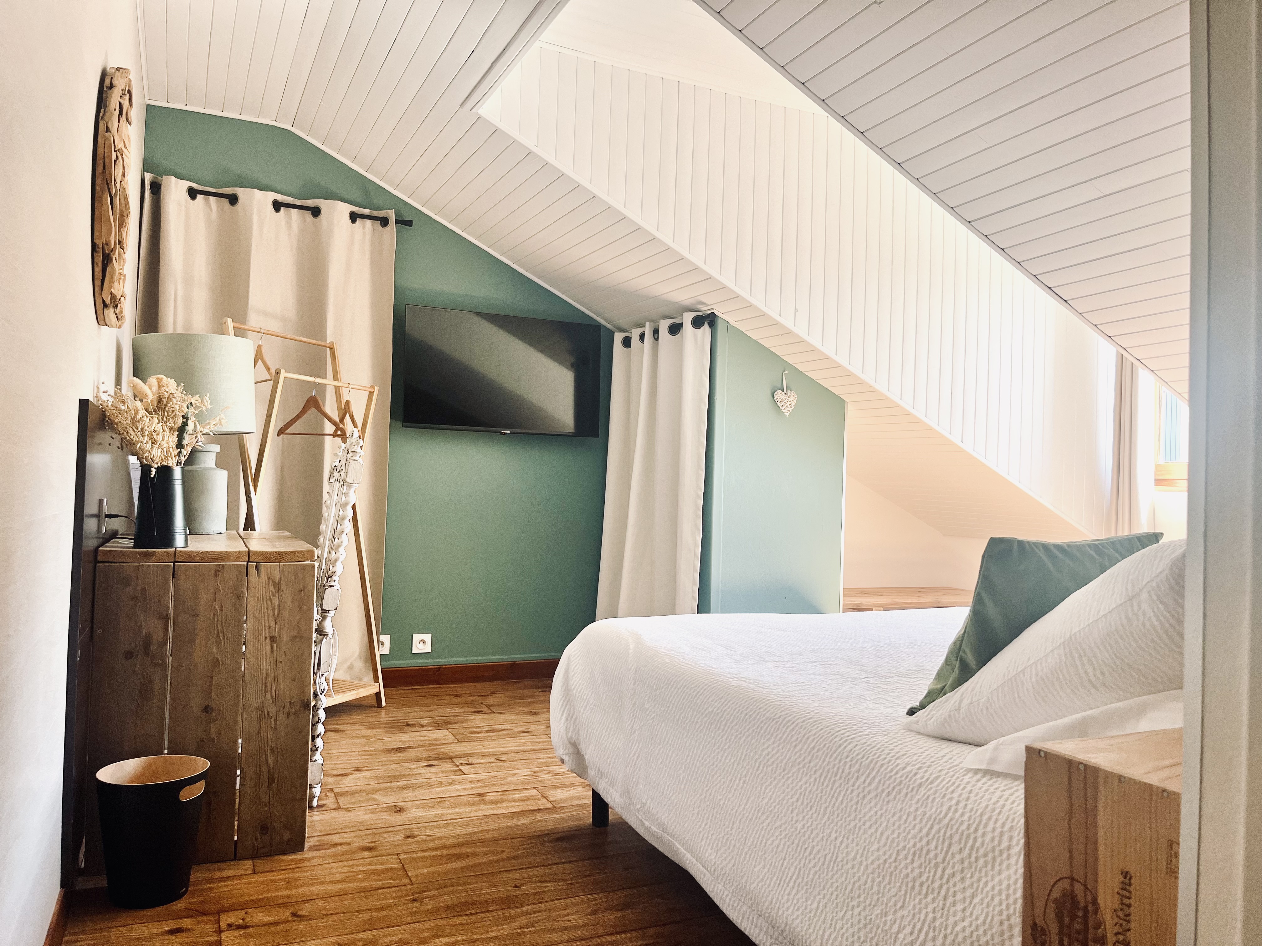 Chaque chambre est munie d’un lit double Queen Size (160x200), d’une salle de bain avec baignoire ou douche et wc, télévision et Wifi.